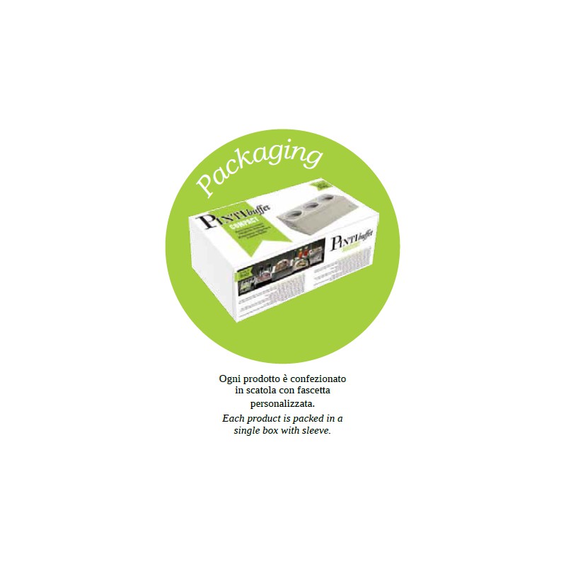 - Ogni prodotto è confezionato in scatola con fascetta personalizzata.