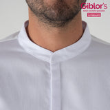 La camicia Roger è un capo dalla grande personalità e molto versatile, ideale sia in ambito ho.re.ca. che per l'impiego in cucina. è realizzata in due tipologie di tessuto, un piquet di misto cotone e un morbido piquet di maglia in poliestere traspirante, ed ha una grammatura media, che lo fa scivolare sul corpo senza aderire. Proposta in manica lunga, ha una vestibilità Slim Fit e presenta il collo coreano, sette automatici nascosti nell'abbottonatura e l'automatico logato ‘G' in galvanico nichel nei polsini. Un moderno taschino trasversale è posto sul lato cuore, sottolineato dalle impunture in tinta che gli conferiscono uno stile contemporaneo. è resistente alle medie ed alte temperature.