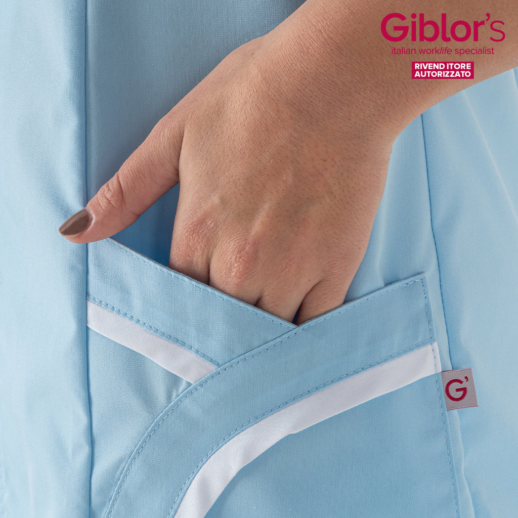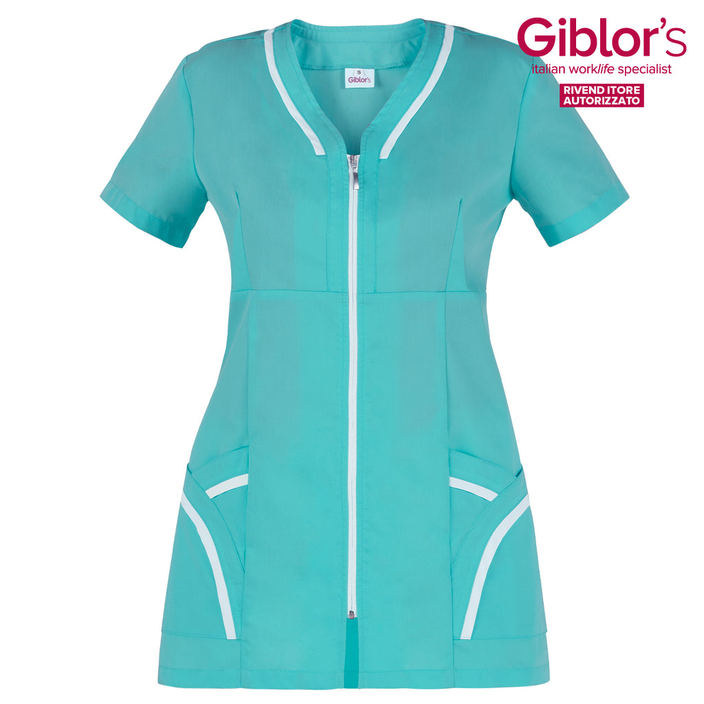 La casacca da lavoro Altea è un must del settore Ho.re.ca & Services. Presenta maniche corte, una scollatura a V, due tasche con zip.