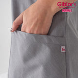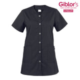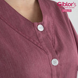 La casacca Camelia è realizzata in un leggero policotone melangiato del peso di appena 145 g / m². Presenta una vestibilità Regular Fit, l'abbottonatura centrale a sei bottoni opachi e due tasche dallo stile geometrico. Il tessuto è resistente alle alte temperature ed è candeggiabile.