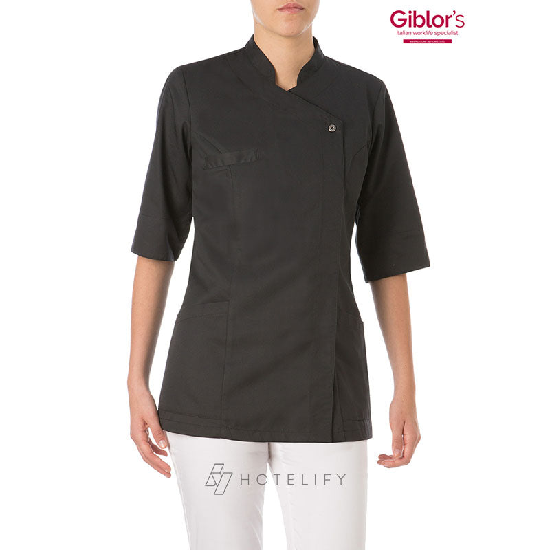 Casacca da donna con maniche a 3/4 disponibile nei colori nero o bianco.