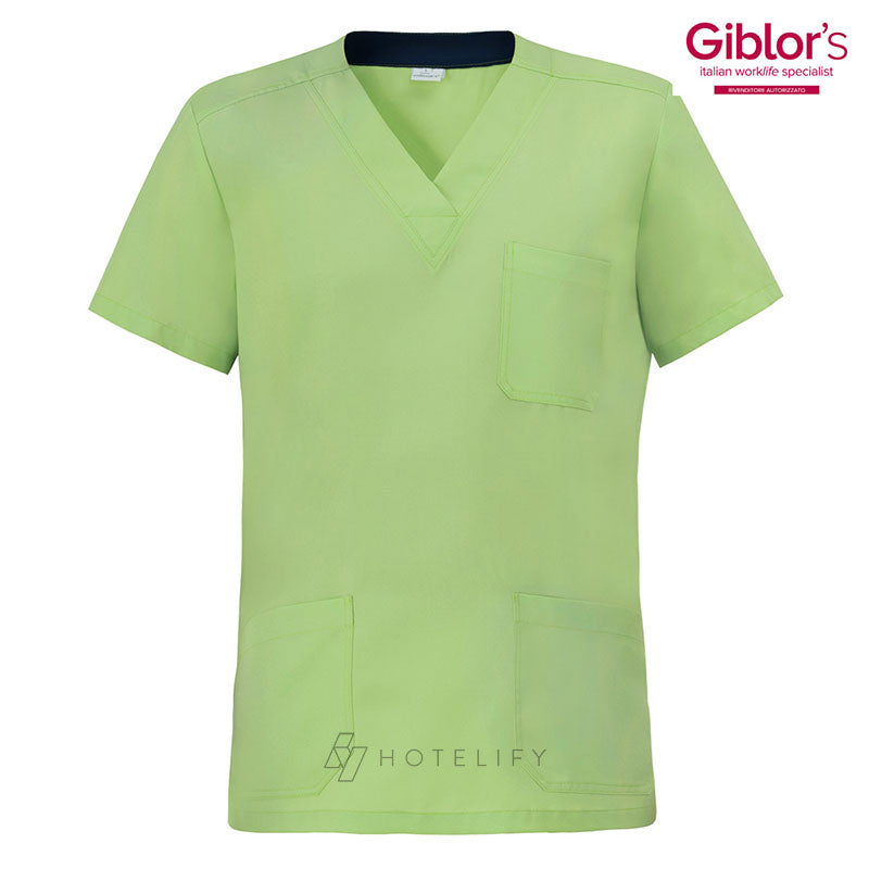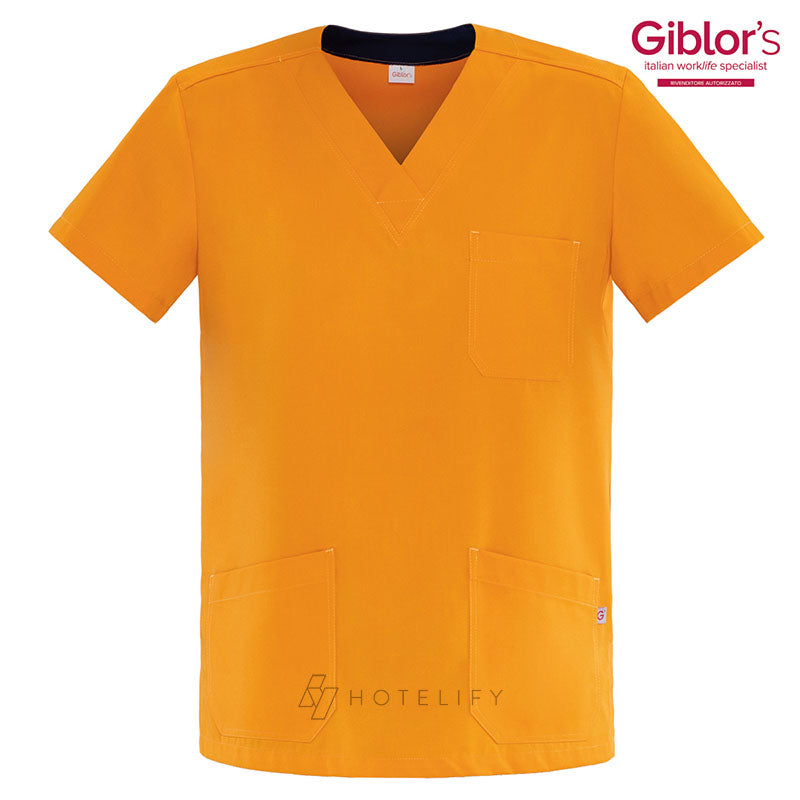 Must del settore “Health & Care”, la casacca Giuliano, pratica e fresca, è realizzata in tencel, una fibra di origine botanica che assicura prestazioni eccellenti per tutto il giorno e assorbe fino al 50% di umidità in più rispetto al cotone. Resistente all’usura, mantiene inalterati forma e colore e risulta facile da stirare. A maniche corte, con scollatura a “V”, tre tasche e spacchi sui fianchi per assicurare libertà nei movimenti. Il tessuto in contrasto e il colore blu all’interno del collo ne valorizza lo stile e l’abbinamento con il pantalone Elia e la bandana.