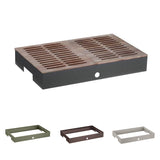 Il prodotto è composto da Tagliere Pane in Legno e Base Bassa; la base ha altezza 7,5 cm ed è disponibile nei colori salvia, burro, caffè e carbone.