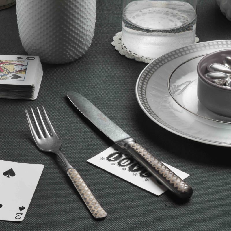 Grazie a strumenti di altissima precisione le Posate TXT della linea Stone Washed si arricchiscono di decorazioni raffinate ed eleganti, realizzate a laser. I prodotti della collezione TXT sono antichizzati con uno speciale processo detto Stone Wash; il risultato è quindi un prodotto unico nell'aspetto e qualitativamente perfetto.