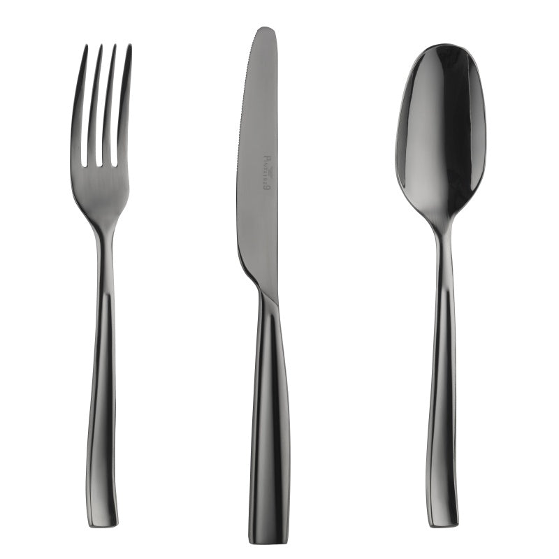 In Oro, bronzo, titanio oppure Total Black le Posate della linea Treasure sono rivestite in PVD - Physical Vapour Deposition, una tecnologia innovativa utilizzata per la deposizione di film metallici sottili, che permette di ottenere durezze superficiali molto elevate e la possibilità di realizzare diversi tipi di colorazioni, senza alterare la lucentezza tipica dell'acciaio né l'atossicità del prodotto, che può quindi entrare tranquillamente in contatto con gli alimenti.