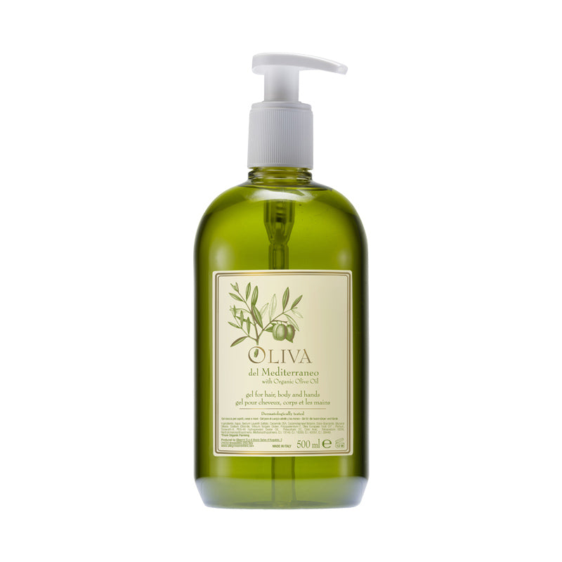 - Con Olio di Oliva biologico - nutre e deterge il corpo; idrata e ammorbidisce i capelli