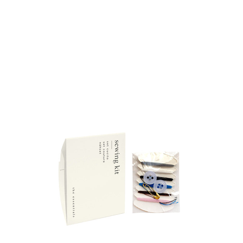 Set cucito in astuccio di carta color crema 100% riciclabile.