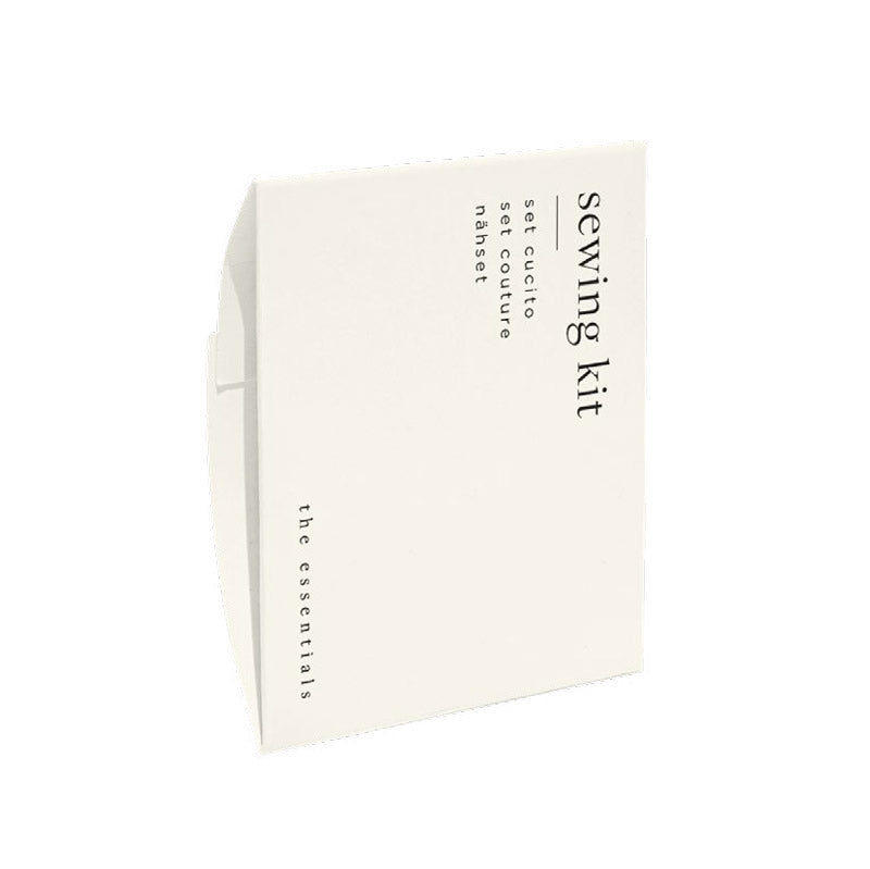 Set cucito in astuccio di carta color crema 100% riciclabile. Un complemento dal design minimal che ben si adatta a diverse tipologie di strutture in abbinamento alla classica linea cortesia.