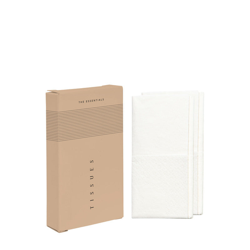Set fazzoletti in astuccio di carta kraft 100% riciclabile. Un complemento dal design minimal e dall'aspetto naturale che ben si adatta a diverse tipologie di strutture in abbinamento alla classica linea cortesia.