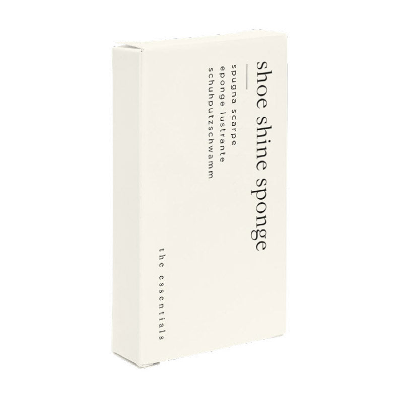 Spugna lucida scarpe in astuccio di carta color crema 100% riciclabile.