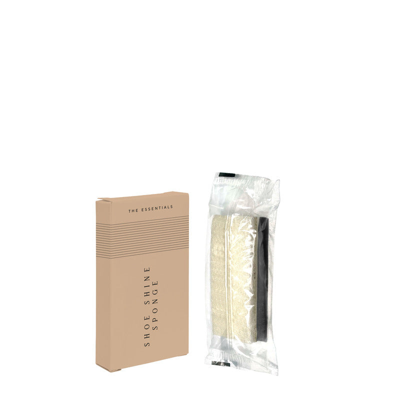 Spugna lucida scarpe in astuccio di carta kraft 100% riciclabile. Un complemento dal design minimal e dall'aspetto naturale che ben si adatta a diverse tipologie di strutture in abbinamento alla classica linea cortesia.